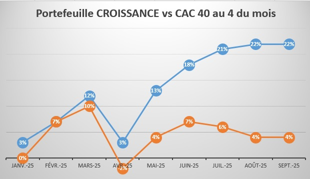 Portefeuille CROISSANCE vs CAC 40 au 4 septembre : 18 points d’avance qui racontent une méthode